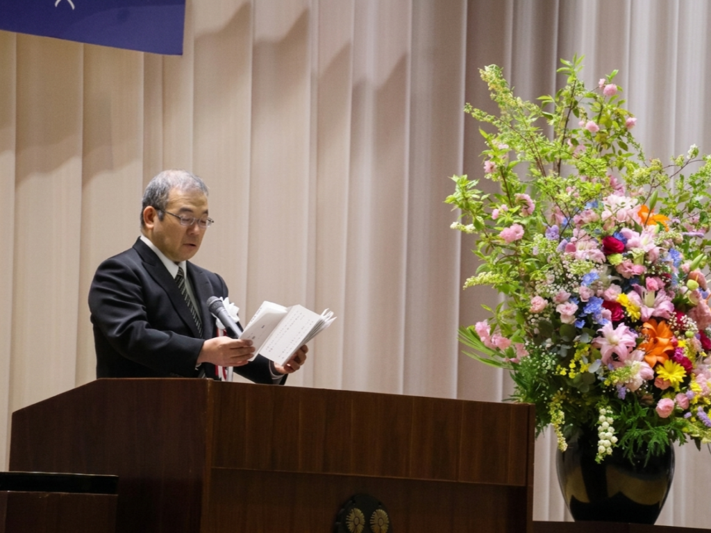 また、志賀啓一理事長から、「大学は、今後就職し、結婚し、家族を養い、さらには社会貢献できるような有為な人材となるための貴重な準備期間です。是非この機会を活かし、有為な人材となって社会に羽ばたく力を蓄えていただきたいと思います。」と告辞が述べられました。