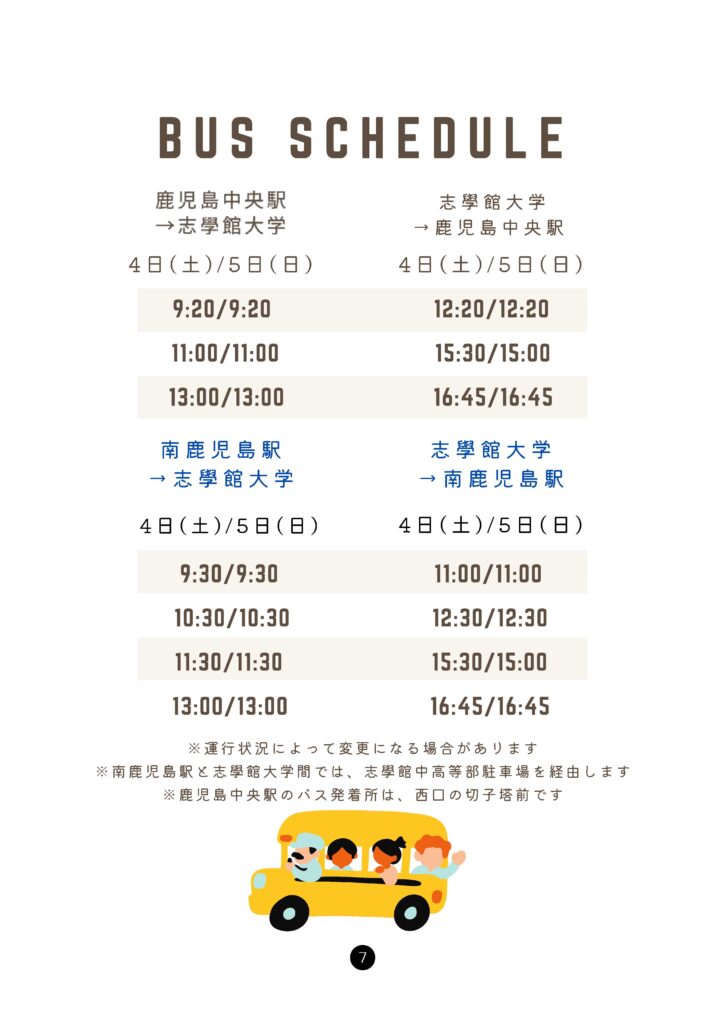 ※南鹿児島駅から志學館大学間のバス所要時間は、片道約20分を予定しています。